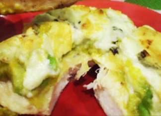 Kuracie prsia naporcujeme na menšie kúsky - je to na Vás, ja som prerezala napoly po dĺžke a ešte napoly - teda vznikli mi také menšie rezníky. Mäso opečieme na panvici len na 1 PL olivového oleja, osolíme, okoreníme. Pečieme, kým mäso pekne zozlatovie. Predhrejeme rúru na pečenie na maximum. Ošúpeme avokádo, popučíme ho vidličkou, pridáme k nemu...